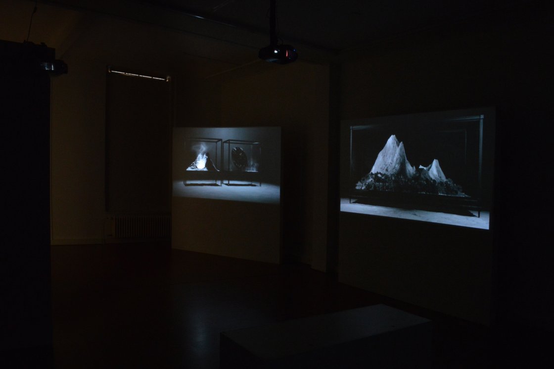 De installatie Inertia bestaat uit drie video’s die tegelijkertijd op drie schermen te zien zijn. Eén scherm staat centraal en de andere twee kun je vanuit je ooghoeken volgen. Je kijkt centraal en voelt als het ware de twee andere beelden mee bewegen. In zwart witte beelden en een duister geluidslandschap zet Crouwers je op een spoor van eenzaamheid en leegte. Het is een reis langs traag bewegende beelden. Opkomende planeten aan onbekende horizonten, een verloren zwevend ruimtestation, een komeet die op je af komt, een ruïne op een rots, een gekapseisd schip, een lege cockpit en een berglandschap dat beweegt. Jijzelf bent de hoofdpersoon, de reiziger. Je reist door een tijdloze en mensloze wereld. Beklemmend, spannend en verontrustend. Af en toe lijkt het of de kunstenaar je nog een boodschap wilt geven wanneer er geometrische figuren en lijnen over de trage reis worden geprojecteerd, maar Crouwers geeft geen uitleg. Je bent overgeleverd aan haar verhaal.