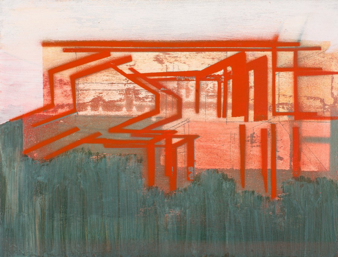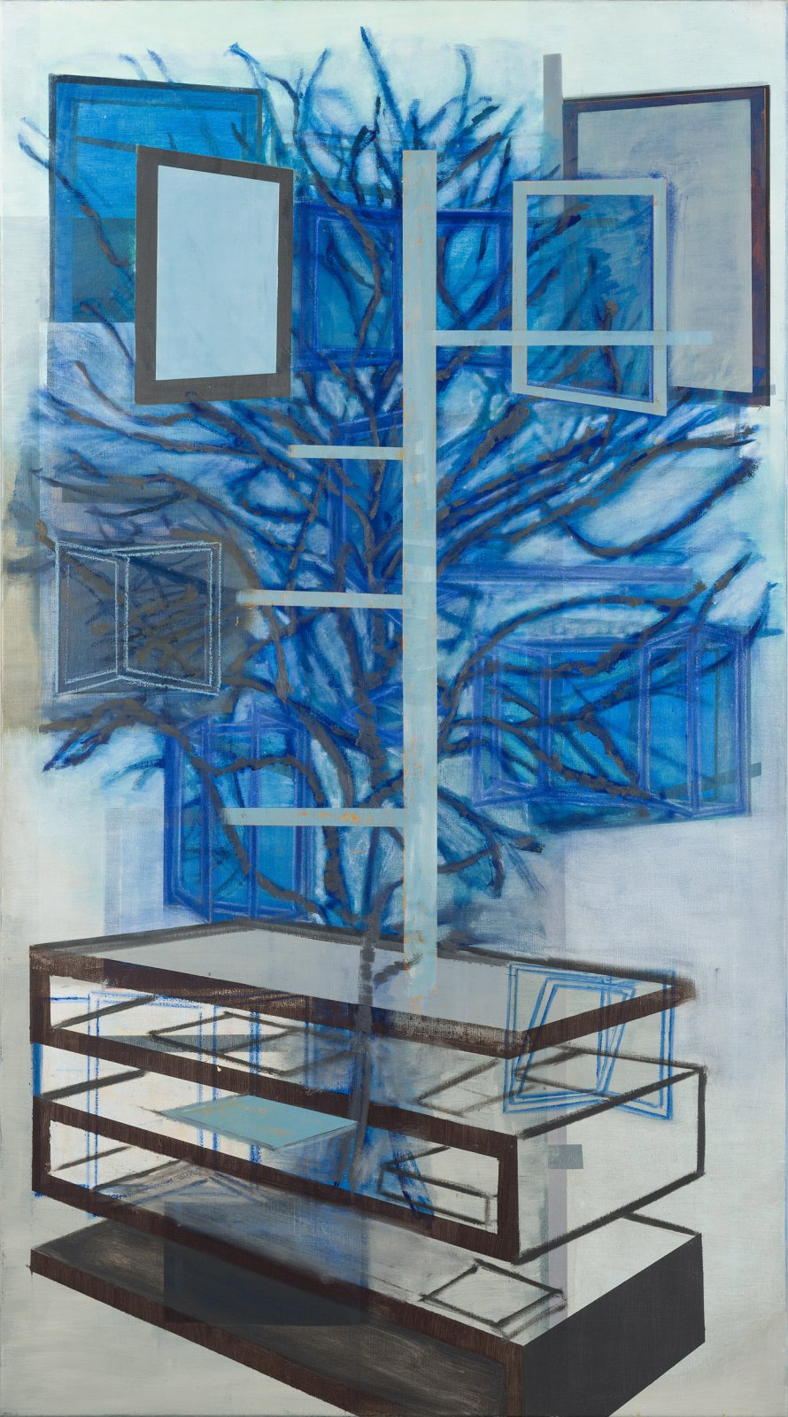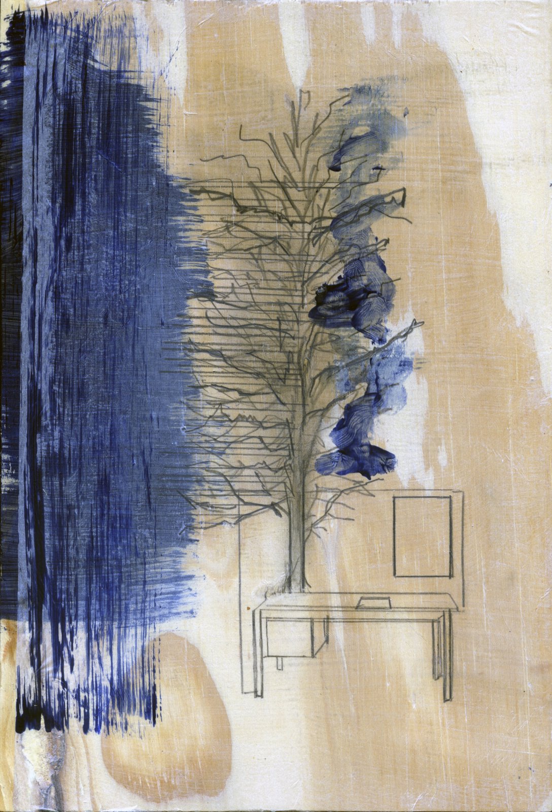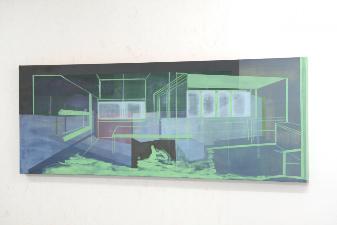 De schilderijen en collages van Liesbeth Doorbosch vinden vrijwel zeker hun oorsprong in architectuur. Het lijkt alsof Doornbosch de oude blauwdrukken van huizen en gebouwen verknipt en verschuift om tot een transparante compositie te komen die als basis dient voor een schilderij. Het schilderij z.t. 2009 laat verschillende van deze architectuurlagen zien. De onderste laag is opgebouwd uit kleurvlakken en lijkt een binnenruimte. Daaroverheen laat zij in wijde perspectieven en in een esthetisch groen binnen – en buitenruimten in elkaar overvloeien. Vensters, tafels en kasten worden zichtbaar in een dun lijnenspel. Esthetiek is Doornbosch niet vreemd en met haar werk probeert zij het zien van de kijker op een prettige manier te ontregelen en op de proef te stellen. Het beeld blijft echter altijd aangenaam.