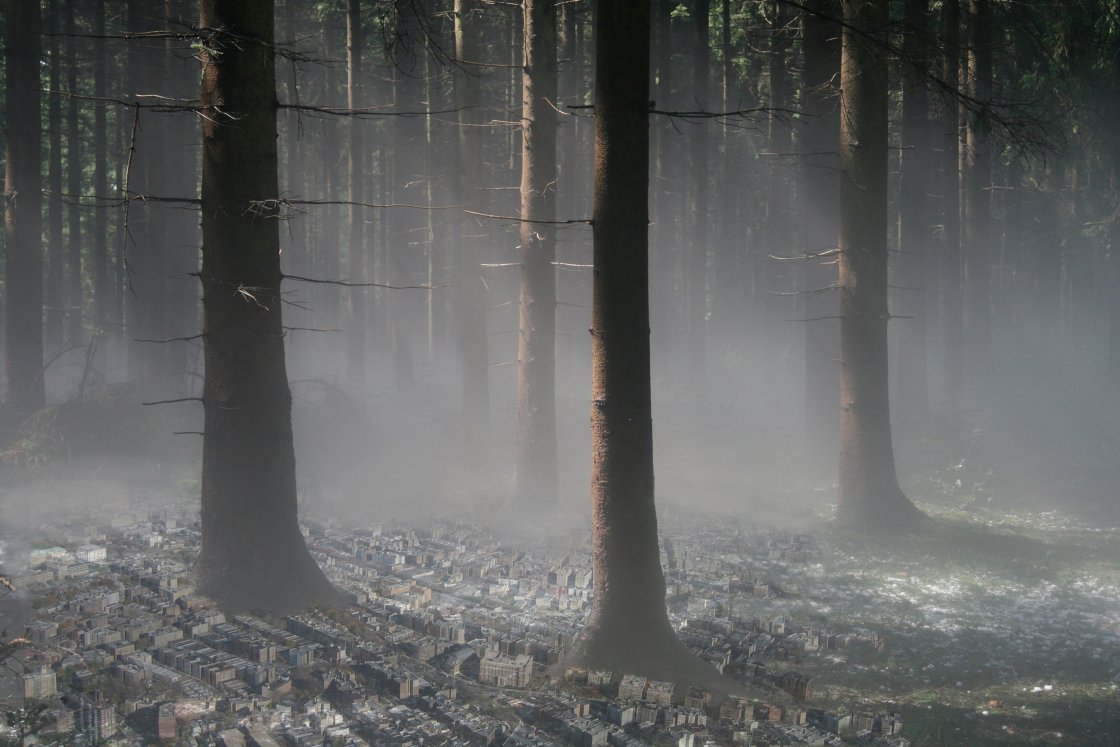 De Groen gebruikt de fotografie als basis voor haar werk. Zo heeft zij bijvoorbeeld in de loop der jaren een immense archief opgebouwd met wolken als onderwerp. Dit archief dient al jaren als inspiratie voor nieuw werk. Deze nieuwe werken worden vaak met een computer gegenereerd en opgebouwd. Dat geldt ook voor de prints in de collectie.Een dennenbos met mistflarden, pas bij bestudering wordt de “onderliggende stad” zichtbaar. Met haar video’s zet zij stilstaande beelden in beweging. Eigenlijk is het een animatie. Zo ook de animatie in de tunnel waarbij het licht achter de bocht tegemoetkomende koplampen suggereren. Maar is dat wel zo? Het lijkt alsof in de video de tijd verstrijkt maar in werkelijkheid is er niets gebeurd.